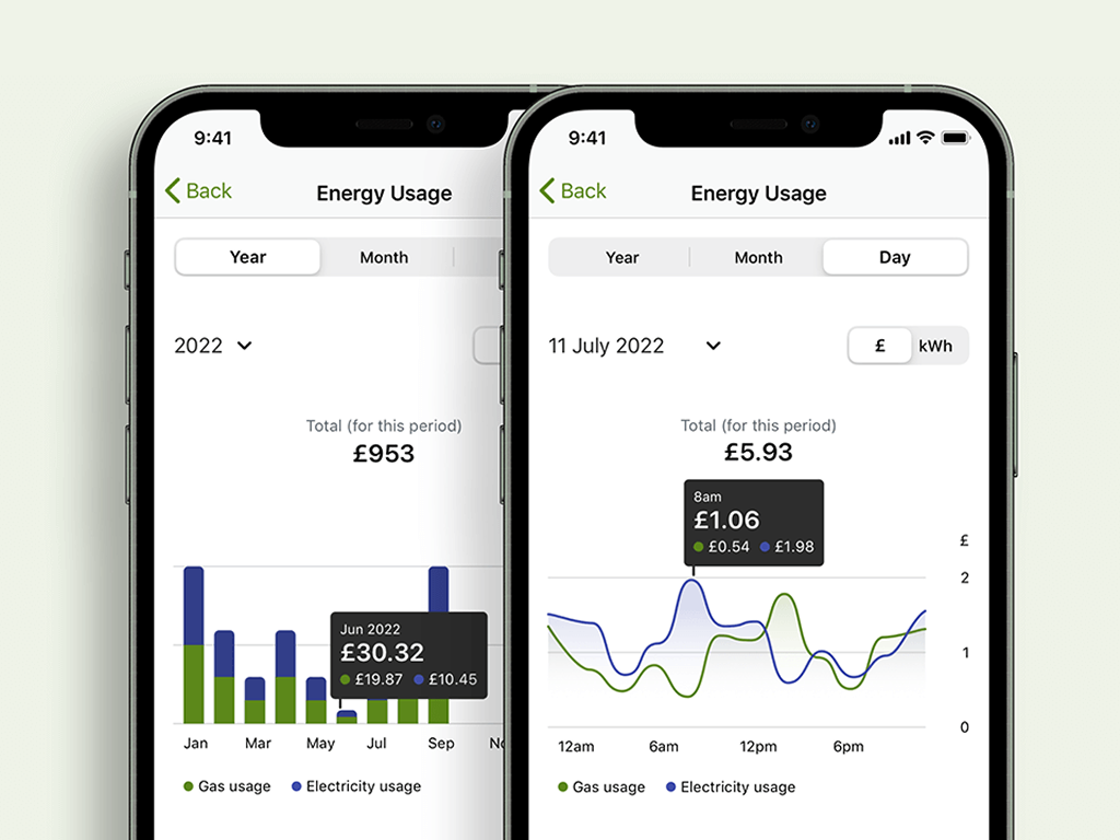 The best way to track your energy use is to install a smart meter. It’ll show you how much energy you’re using in pounds and pence and helps you monitor your monthly bill.